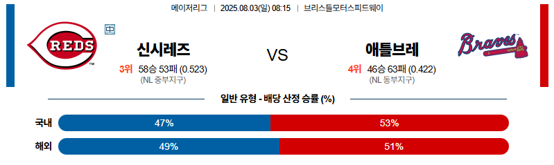 신시내티 대 애틀랜타 MLB 08월03일 맞대결 생중계, 스포츠중계, 스포츠분석