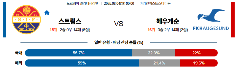 하우게순 (현재 랭킹: 중위권 / 최근 5경기: 1승 2무 2패)
