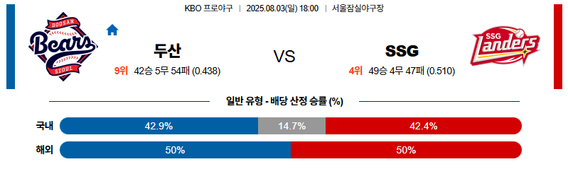 두산 대 SSG KBO 08월03일 맞대결 생중계, 스포츠중계, 스포츠분석
