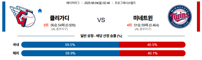 클리블랜드 대 미네소타 MLB 08월04일 맞대결 생중계, 스포츠중계, 스포츠분석