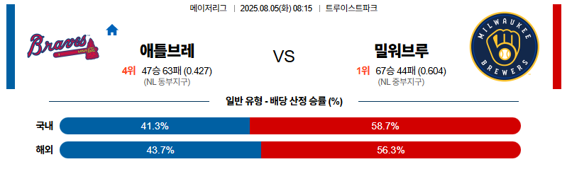 애틀랜타 대 밀워키 MLB 08월05일 맞대결 생중계, 스포츠중계, 스포츠분석