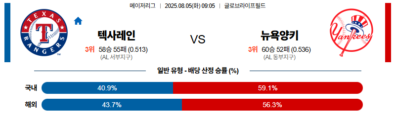 텍사스 대 뉴욕양키스 MLB 08월05일 맞대결 생중계, 스포츠중계, 스포츠분석