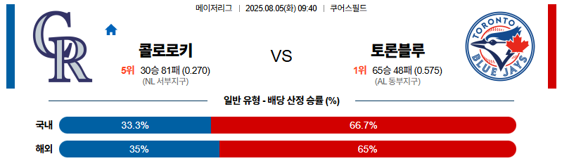 콜로라도 대 토론토 MLB 08월05일 맞대결 생중계, 스포츠중계, 스포츠분석