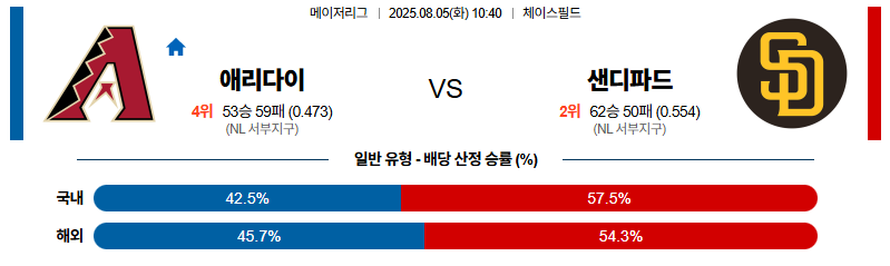 애리조나 대 샌디에이고 MLB 08월05일 맞대결 생중계, 스포츠중계, 스포츠분석