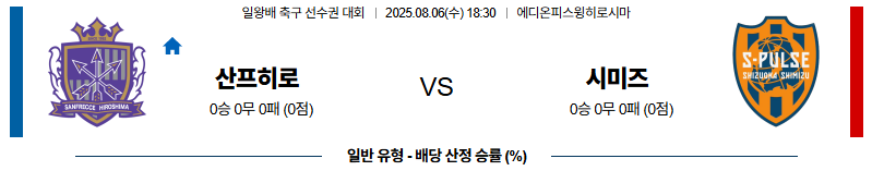 산프레체히로시마 대 시미즈 일본일왕배 08월06일 맞대결 생중계, 스포츠중계, 스포츠분석