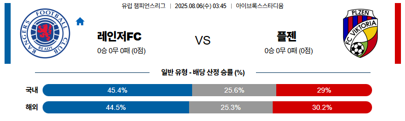 레인저스 대 빅토리아플젠 UEFA챔피언스리그 08월06일 맞대결 생중계, 스포츠중계, 스포츠분석