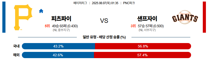 피츠버그 대 샌프란시스코 MLB 08월07일 맞대결 생중계, 스포츠중계, 스포츠분석
