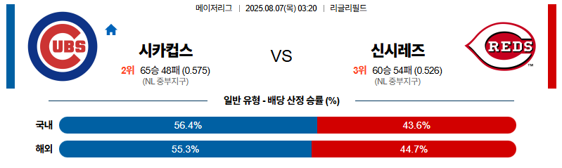 시카고컵스 대 신시내티 MLB 08월07일 맞대결 생중계, 스포츠중계, 스포츠분석