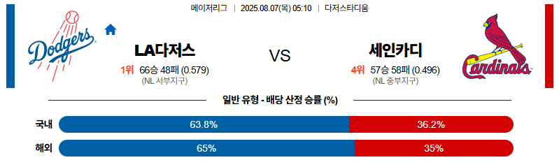 LA다저스 대 세인트루이스 MLB 08월07일 맞대결 생중계, 스포츠중계, 스포츠분석