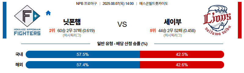 니혼햄 대 세이부 NPB 08월07일 맞대결 생중계, 스포츠중계, 스포츠분석