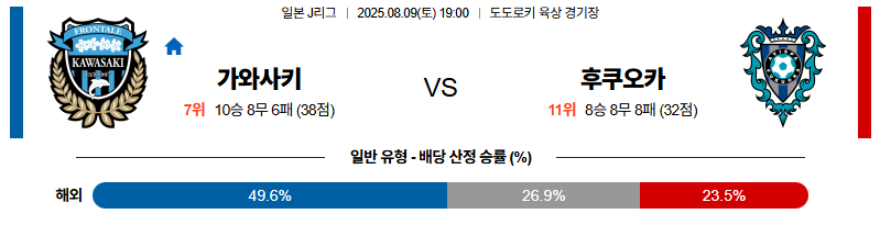 가와사키 대 후쿠오카 J리그1 08월09일 맞대결 생중계, 스포츠중계, 스포츠분석
