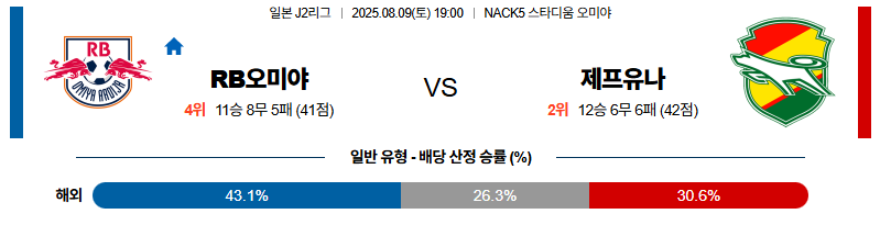 오미야 대 제프유나이티드 J리그2 08월09일 맞대결 생중계, 스포츠중계, 스포츠분석