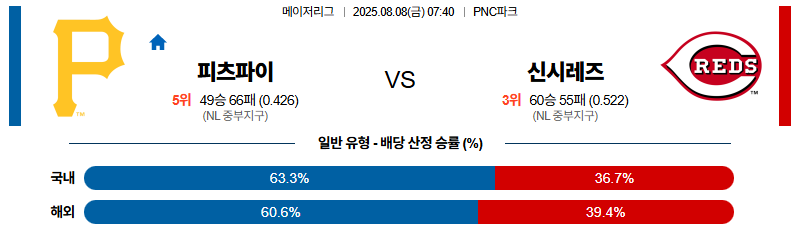 피츠버그 대 신시내티 MLB 08월08일 맞대결 생중계, 스포츠중계, 스포츠분석
