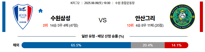 수원삼성 대 안산 K리그2 08월09일 맞대결 생중계, 스포츠중계, 스포츠분석