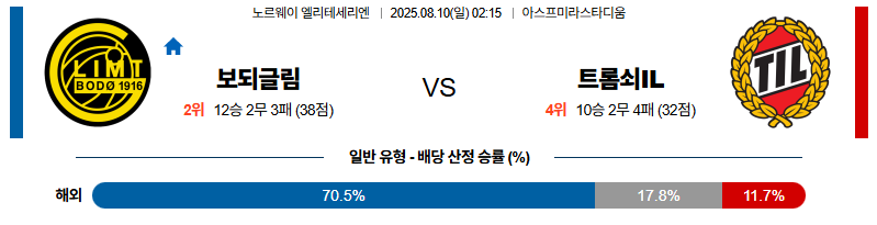 보되글림트 대 트롬쇠 노르웨이1부 08월10일 맞대결 생중계, 스포츠중계, 스포츠분석
