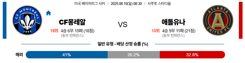 몬트리올 대 애틀랜타 메이저리그사커 08월10일 맞대결 생중계, 스포츠중계, 스포츠분석