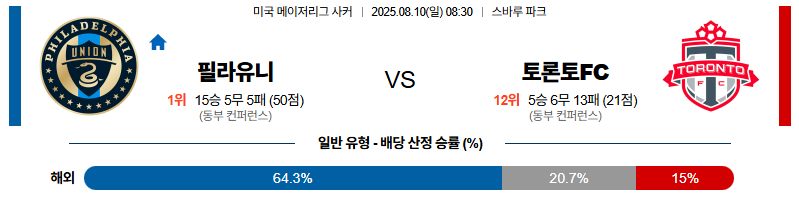 필라델피아 대 토론토 메이저리그사커 08월10일 맞대결 생중계, 스포츠중계, 스포츠분석
