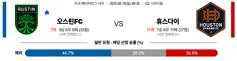 오스틴 대 휴스턴 메이저리그사커 08월10일 맞대결 생중계, 스포츠중계, 스포츠분석