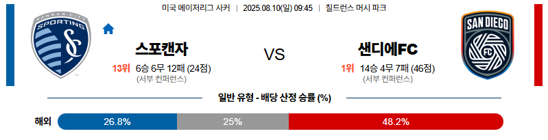 켄자스시티 대 샌디에고 메이저리그사커 08월10일 맞대결 생중계, 스포츠중계, 스포츠분석