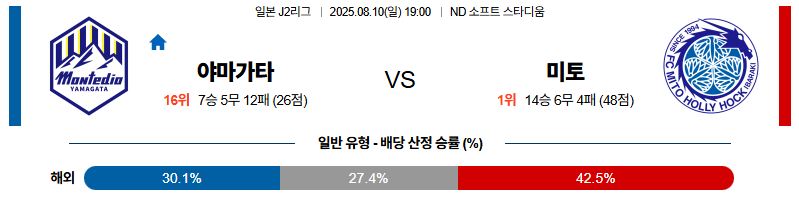 야마가타 대 미토홀릭 J리그2 08월10일 맞대결 생중계, 스포츠중계, 스포츠분석
