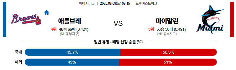 애틀랜타 대 마이애미 MLB 08월09일 맞대결 생중계, 스포츠중계, 스포츠분석