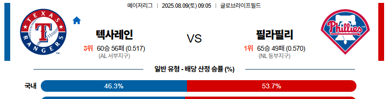 텍사스 대 필라델피아 MLB 08월09일 맞대결 생중계, 스포츠중계, 스포츠분석