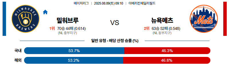 밀워키 대 뉴욕메츠 MLB 08월09일 맞대결 생중계, 스포츠중계, 스포츠분석