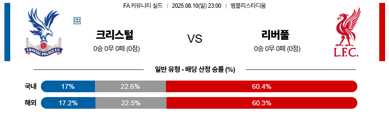 크리스탈팰리스 대 리버풀 FA커뮤니실드 08월10일 맞대결 생중계, 스포츠중계, 스포츠분석