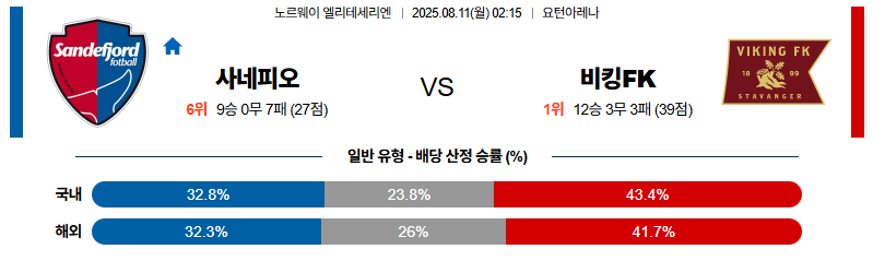 사네피오르 대 바이킹 노르웨이1부 08월11일 맞대결 생중계, 스포츠중계, 스포츠분석