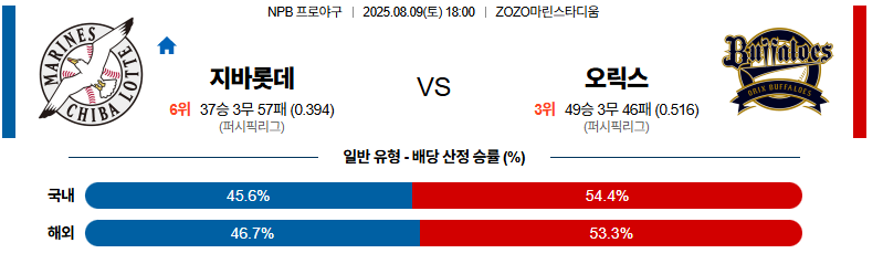 지바롯데 대 오릭스 NPB 08월09일 맞대결 생중계, 스포츠중계, 스포츠분석