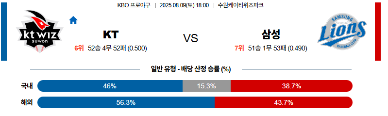 KT 대 삼성 KBO 08월09일 맞대결 생중계, 스포츠중계, 스포츠분석