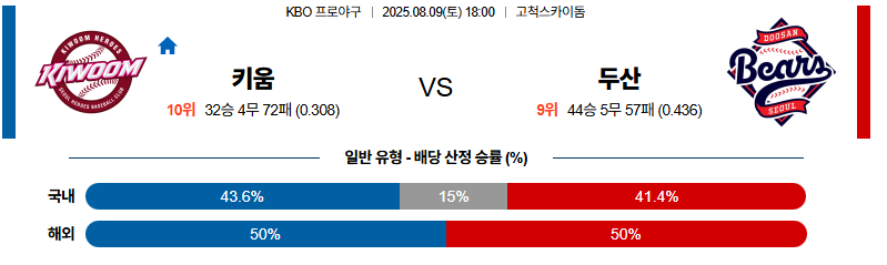 키움 대 두산 KBO 08월09일 맞대결 생중계, 스포츠중계, 스포츠분석