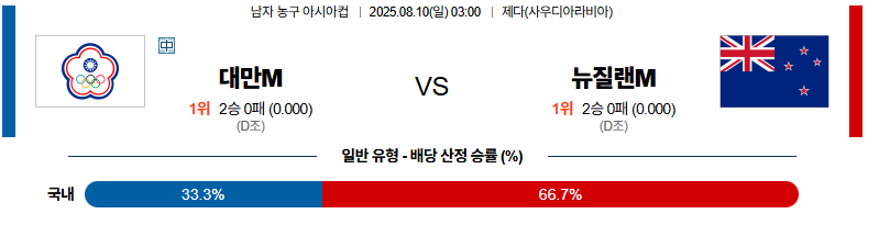 대만 대 뉴질랜드 아시안컵 08월10일 맞대결 생중계, 스포츠중계, 스포츠분석