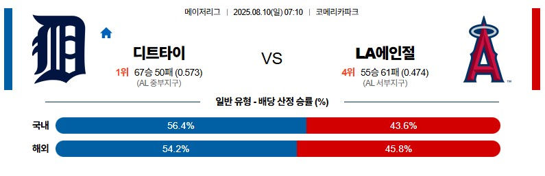 디트로이트 대 LA에인절스 MLB 08월10일 맞대결 생중계, 스포츠중계, 스포츠분석