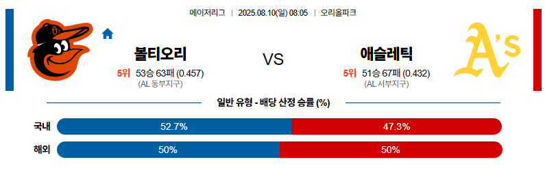 볼티모어 대 애슬레틱스 MLB 08월10일 맞대결 생중계, 스포츠중계, 스포츠분석