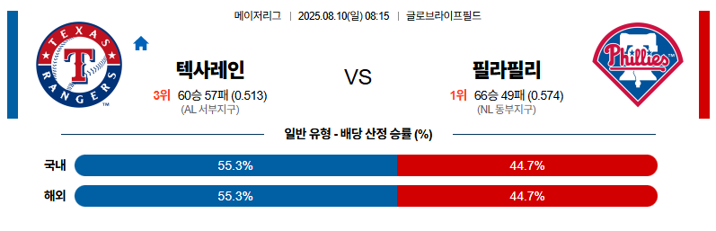 텍사스 대 필라델피아 MLB 08월10일 맞대결 생중계, 스포츠중계, 스포츠분석