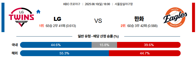 LG 대 한화 KBO 08월10일 맞대결 생중계, 스포츠중계, 스포츠분석