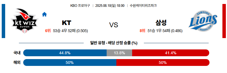 KT 대 삼성 KBO 08월10일 맞대결 생중계, 스포츠중계, 스포츠분석