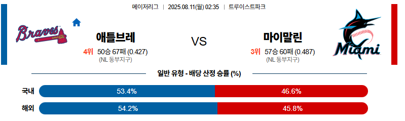애틀랜타 대 마이애미 MLB 08월11일 맞대결 생중계, 스포츠중계, 스포츠분석