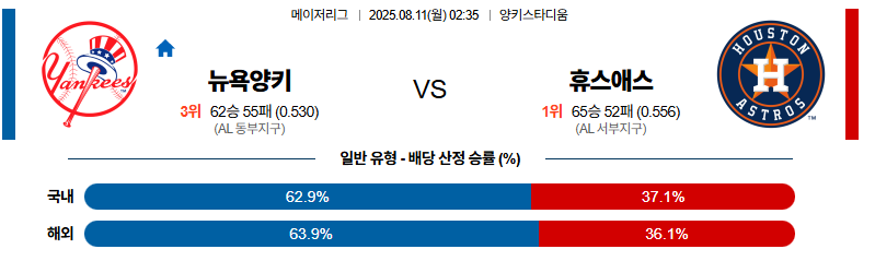 뉴욕양키스 대 휴스턴 MLB 08월11일 맞대결 생중계, 스포츠중계, 스포츠분석