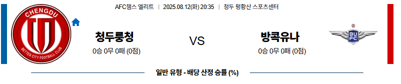 청두룽청 대 방콕유나이티드 AFC챔피언스리그 08월12일 맞대결 생중계, 스포츠중계, 스포츠분석