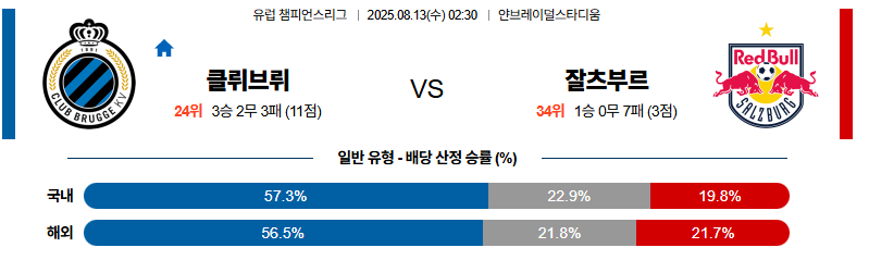 클럽브뤼헤 대 잘츠부르크 UEFA챔피언스리그 08월13일 맞대결 생중계, 스포츠중계, 스포츠분석