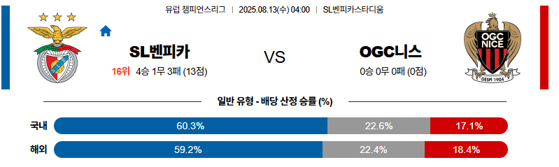 벤피카 대 니스 UEFA챔피언스리그 08월13일 맞대결 생중계, 스포츠중계, 스포츠분석