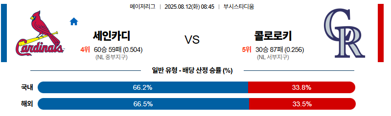 세인트루이스 대 콜로라도 MLB 08월12일 맞대결 생중계, 스포츠중계, 스포츠분석