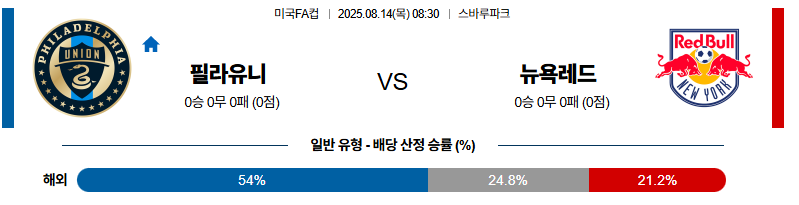 필라델피아 대 뉴욕레드불 미국FA컵 08월14일 맞대결 생중계, 스포츠중계, 스포츠분석