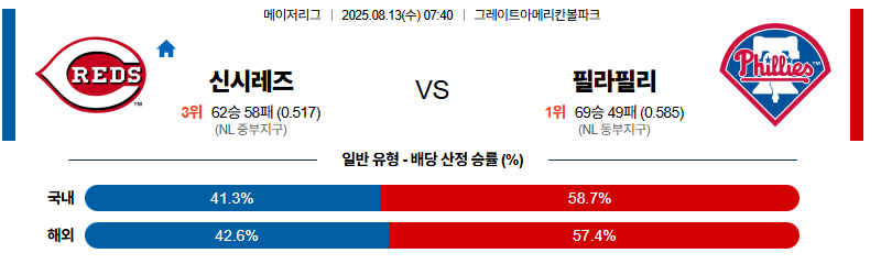 신시내티 대 필라델피아 MLB 08월13일 맞대결 생중계, 스포츠중계, 스포츠분석
