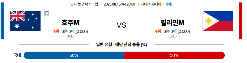 호주 대 필리핀 아시안컵 08월13일 맞대결 생중계, 스포츠중계, 스포츠분석