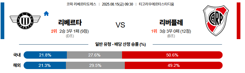 리베르타드 대 리버플레이트 코파리베르타도레 08월15일 맞대결 생중계, 스포츠중계, 스포츠분석