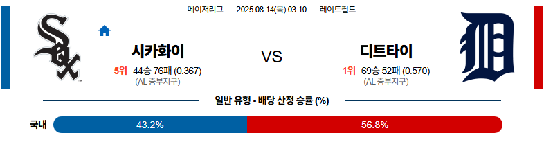 시카고W 대 디트로이트 MLB 08월14일 맞대결 생중계, 스포츠중계, 스포츠분석