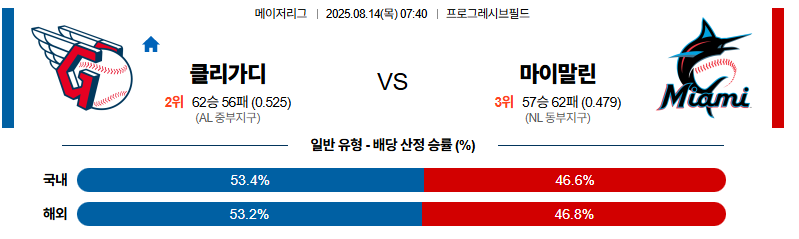 클리블랜드 대 마이애미 MLB 08월14일 맞대결 생중계, 스포츠중계, 스포츠분석